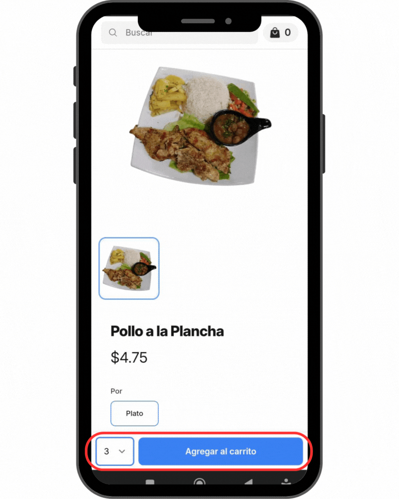 1. Elija la cantidad de cierto producto y presione en Agregar al carrito.